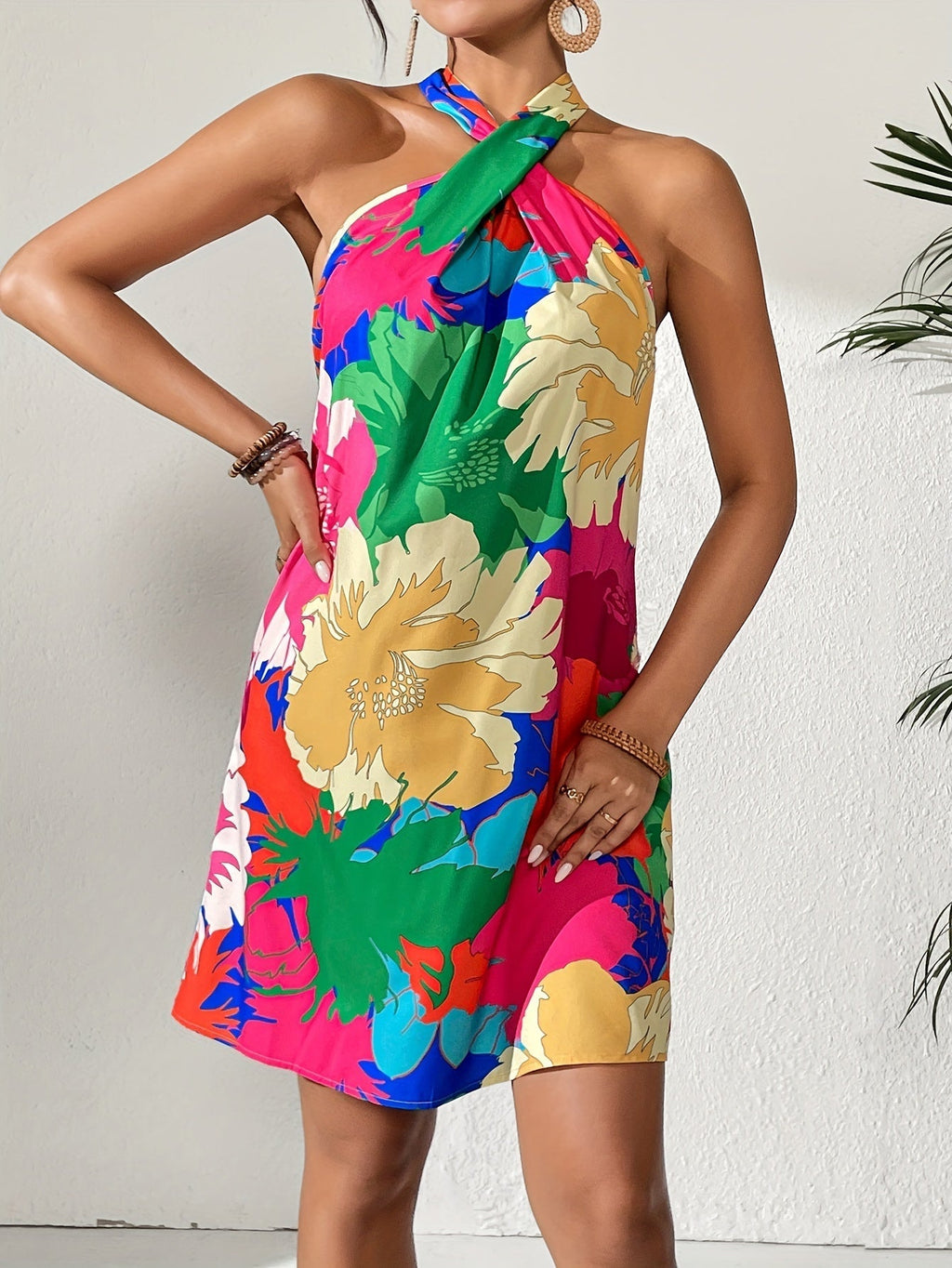 What makes this floral halter neck dress a must-have is its attention to detail. The vibrant floral print captures the beauty of spring blossoms, offering a refreshing and lively look. Pair it with sandals for a casual day out or dress it up with heels and statement jewelry for evening events. Its adaptability makes it a go-to choice for fashion-forward individuals.