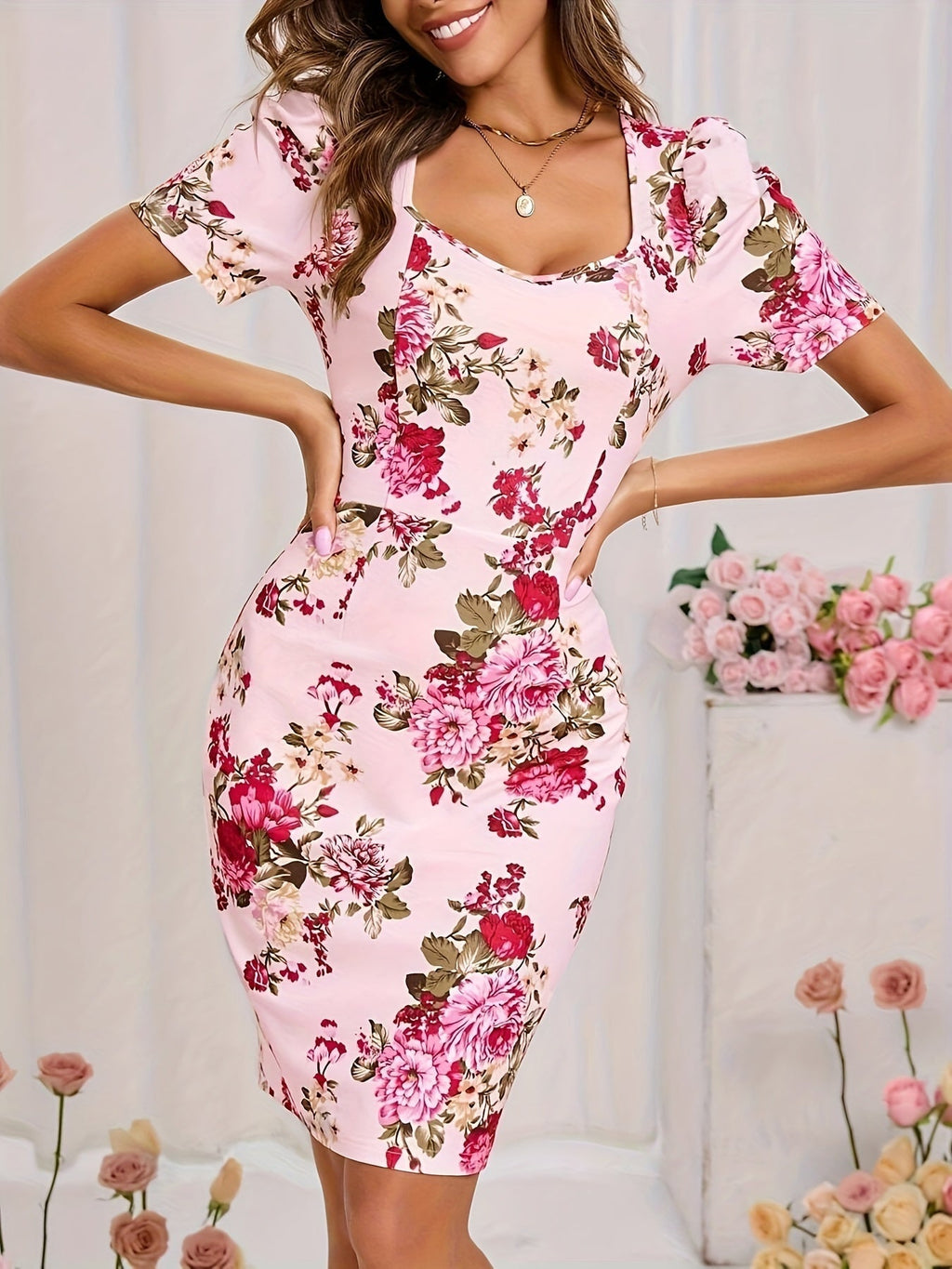 Voocci™ Floral Print Square Neck Dress for Elegance