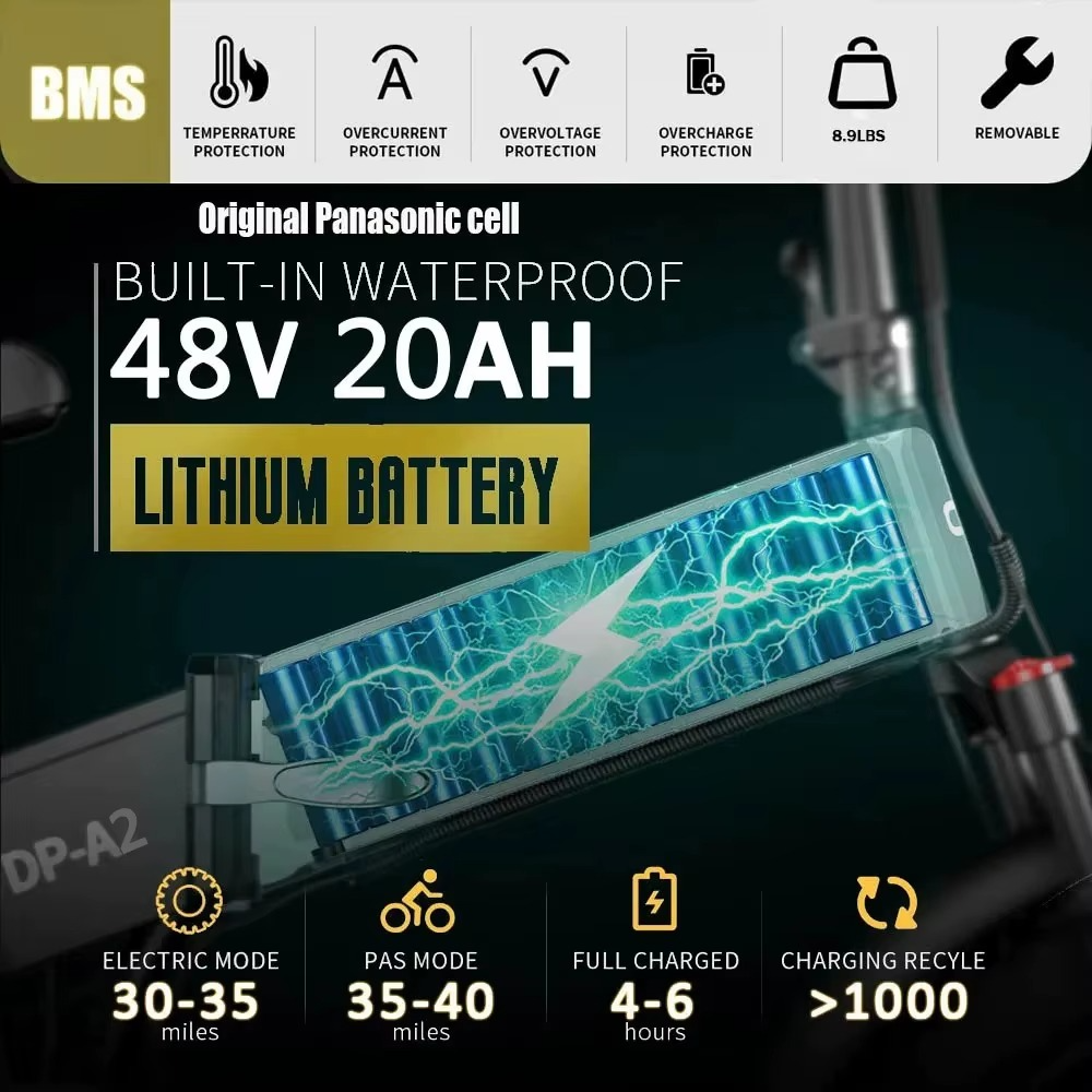 Introducing the DEEPOWER A2 Folding Electric Bike for Adults, an innovative ride crafted for those who seek adventure and convenience. Powered by a robust 750W motor, this folding electric bike for adults offers smooth rides over varied terrains. Its 48V 20Ah battery ensures you can travel distances up to 80km on a single charge.