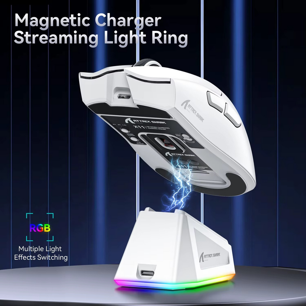 attack shark x11 tri-mode rgb gaming mouse – bluetooth / 2.4g / wired + magnetic charging base – 22000 dpi, paw3311 sensor